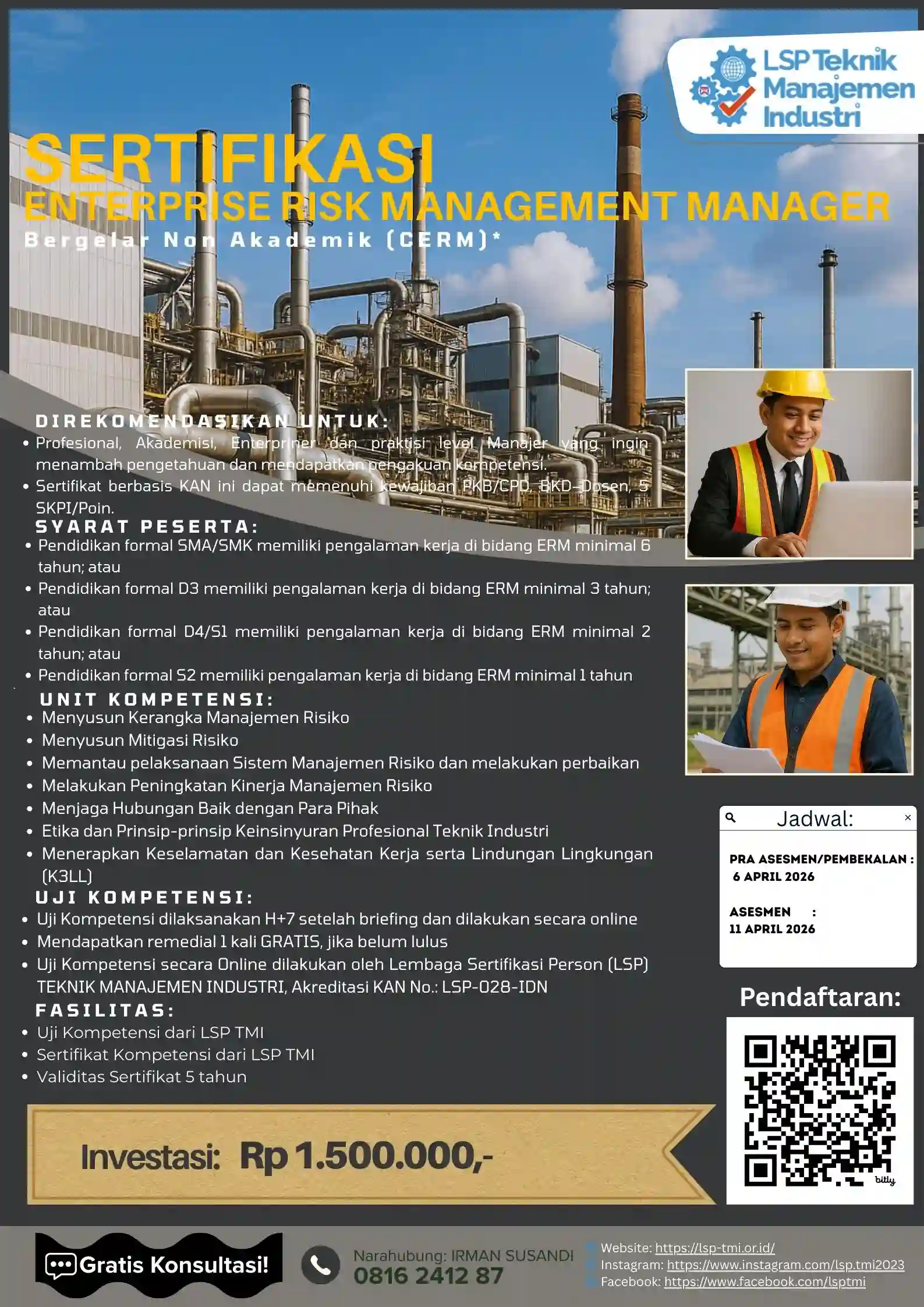 Investasi strategis untuk penguatan kompetensi manajemen risiko dan peningkatan kredibilitas profesional Anda.