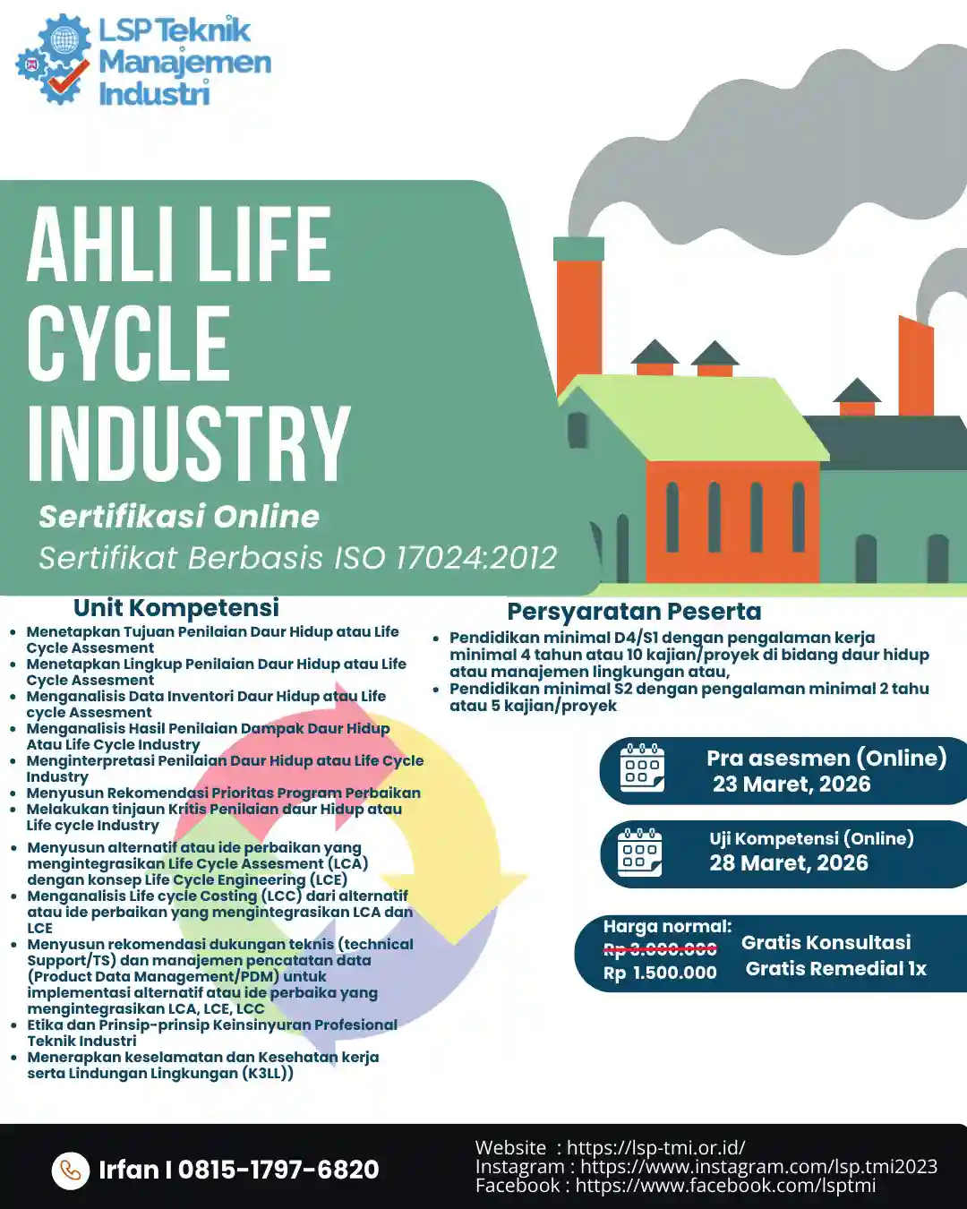 Maret 2026 : SERTIFIKASI AHLI LIFE CYCLE INDUSTRY