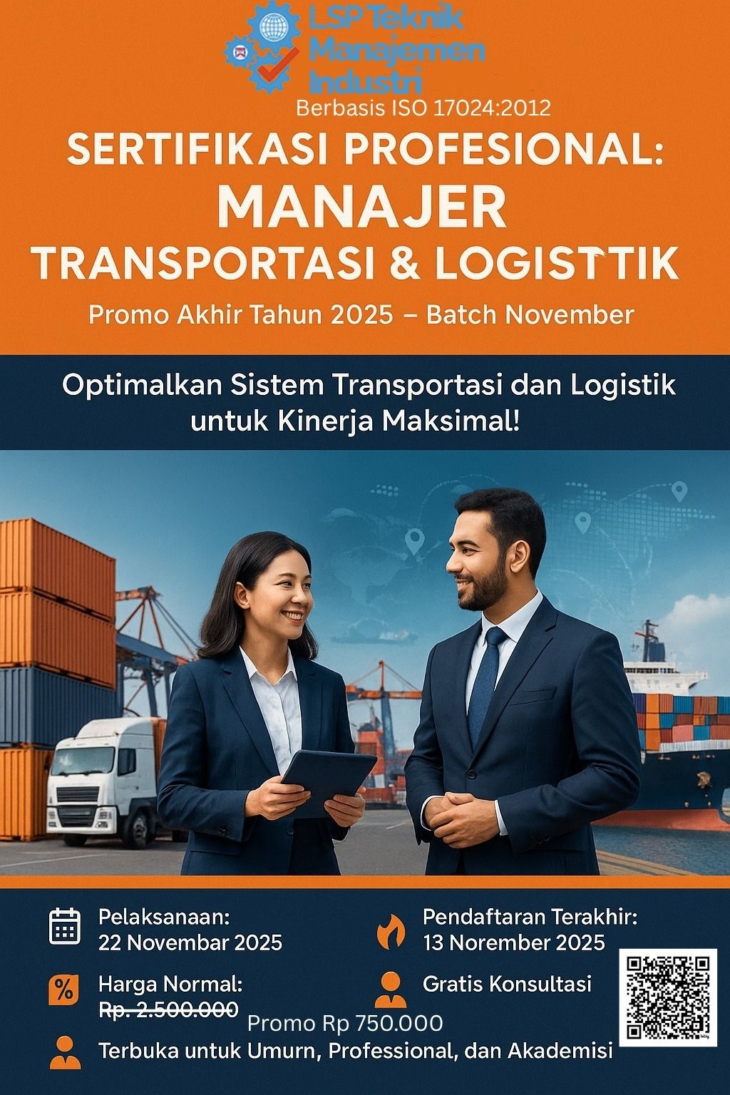 PROMO AKHIR TAHUN 2025 : SERTIFIKASI MANAJER TRANSPORTASI LOGISTIK