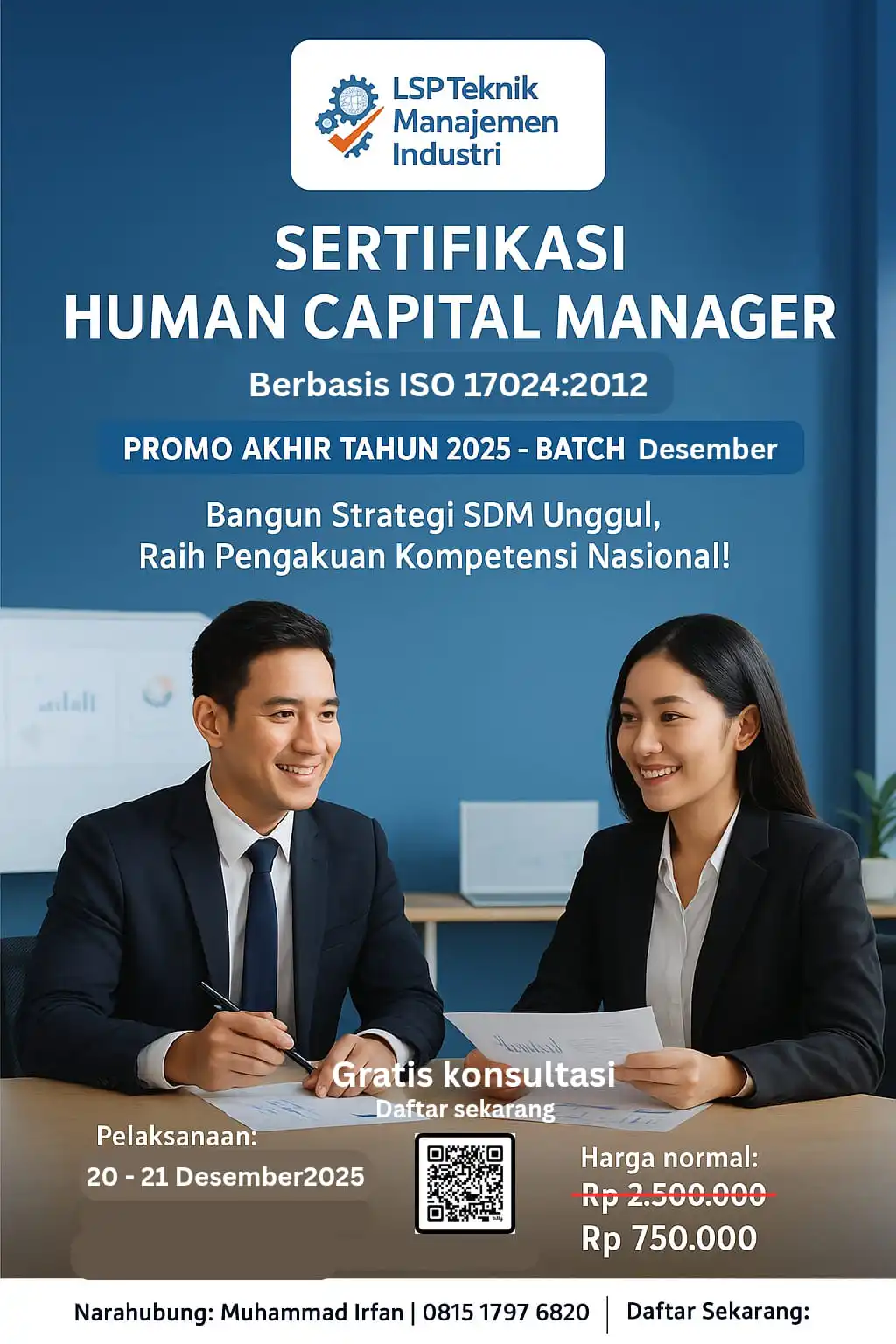 Manfaatkan PROMO AKHIR TAHUN 2025 dan bergabunglah dalam program Sertifikasi Human Capital Manager.