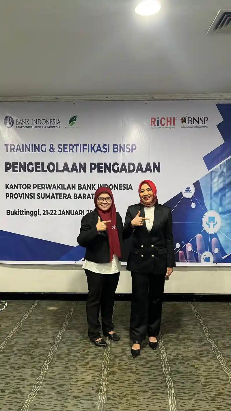 Dalam rangka meningkatkan kompetensi dan profesionalisme sumber daya manusia di bidang pengelolaan pengadaan, telah diselenggarakan kegiatan Training dan Sertifikasi BNSP Skema Pengelolaan Pengadaan yang diikuti oleh 15 peserta dari lingkungan Kantor Perwakilan Bank Indonesia Provinsi Sumatera Barat.